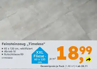 Den Preis von dem Feinsteinzeug „Timeless" finden Sie auch oben auf der Website, zusammen mit dem Datum, ab wann das Angebot erhältlich ist. Sie können die Preise auch im aktuellen Globus Baumarkt Prospekt nachhalten oder auf der Globus Baumarkt Website nachschauen. Durch die Angebote können Sie sicher sein, die Globus Baumarkt Produkte zum absoluten Bestpreis zu ergattern.