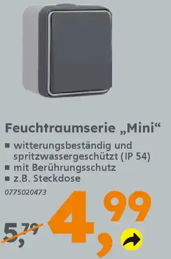 Feuchtraumserie,,Mini" ist jetzt im Angebot bei Globus Baumarkt, gültig vom 08-02-2026 bis 14-02-2026. Besuchen Sie die Website von Globus Baumarkt oder kaufen Sie Feuchtraumserie,,Mini" direkt im Geschäft. Auf Prospektangebote.de finden Sie immer die besten aktuellen Aktionen. Vergleichen Sie Feuchtraumserie,,Mini" mit anderen Angeboten und prüfen Sie, ob sich ein Kauf jetzt lohnt. Behalten Sie kommende Aktionen im Blick, denn manche Produkte sind nur nächste Woche oder nur vor Ort verfügbar.Häufig gestellte Fragen über Feuchtraumserie,,Mini"