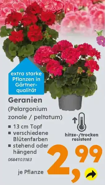 Geranien (Pelargonium zonale/peltatum) Aktion bei Globus Baumarkt