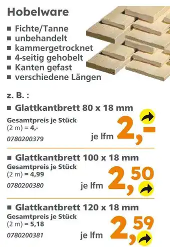 Jetzt im Angebot bei Globus Baumarkt: Glattkantbrett 80 x 18 mm ✅ Aktion gültig vom 18-01 bis 24-01.