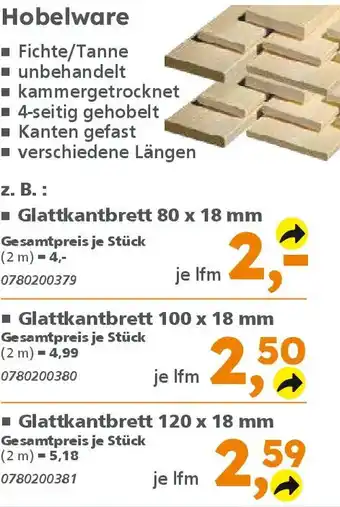 Den Preis von dem Hobelware finden Sie auch oben auf der Website, zusammen mit dem Datum, ab wann das Angebot erhältlich ist. Sie können die Preise auch im aktuellen Globus Baumarkt Prospekt nachhalten oder auf der Globus Baumarkt Website nachschauen. Durch die Angebote können Sie sicher sein, die Globus Baumarkt Produkte zum absoluten Bestpreis zu ergattern.