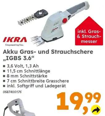 IKRA Akku Gras- und Strauchschere „IGBS 3.6" Angebote und Online Aktionen direkt aus dem aktuellen Globus Baumarkt Angebot