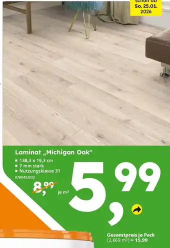 Den Preis von dem Laminat,,Michigan Oak" finden Sie auch oben auf der Website, zusammen mit dem Datum, ab wann das Angebot erhältlich ist. Sie können die Preise auch im aktuellen Globus Baumarkt Prospekt nachhalten oder auf der Globus Baumarkt Website nachschauen. Durch die Angebote können Sie sicher sein, die Globus Baumarkt Produkte zum absoluten Bestpreis zu ergattern.