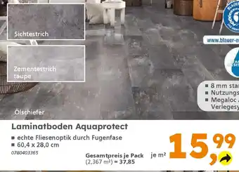 Den Preis von dem Laminatboden Aquaprotect finden Sie auch oben auf der Website, zusammen mit dem Datum, ab wann das Angebot erhältlich ist. Sie können die Preise auch im aktuellen Globus Baumarkt Prospekt nachhalten oder auf der Globus Baumarkt Website nachschauen. Durch die Angebote können Sie sicher sein, die Globus Baumarkt Produkte zum absoluten Bestpreis zu ergattern.