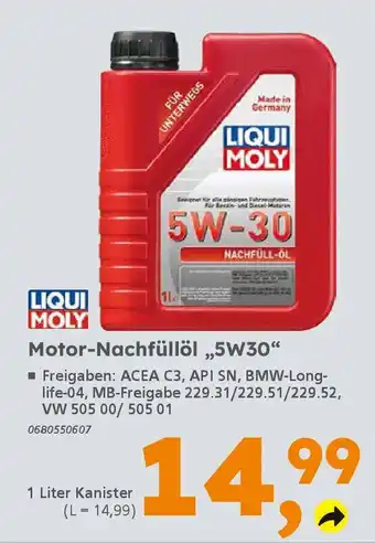 LIQUI MOLY Motor-Nachfüllöl „,5W30" Angebote und Aktionen bei Globus Baumarkt