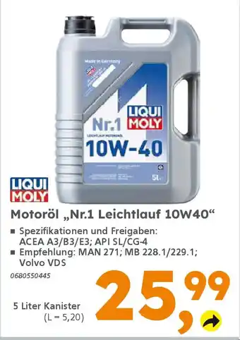 LIQUI MOLY Motoröl,,Nr.1 Leichtlauf 10W40" Aktion bei Globus Baumarkt