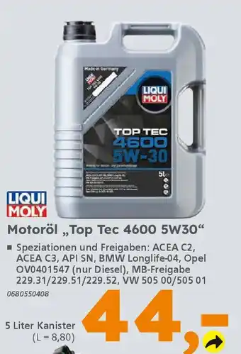 LIQUI MOLY Motoröl,,Top Tec 4600 5W30"-Angebot bei Globus Baumarkt
