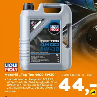 LIQUI MOLY Motoröl „Top Tec 4600 5W30" Angebote und Online Aktionen direkt aus dem aktuellen Globus Baumarkt Angebot