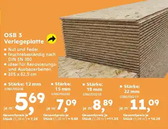 Diese Woche ist OSB 3 Verlegeplatte bei Globus Baumarkt reduziert erhältlich. Hier finden Sie alle Informationen zu Preisen, Aktionsdetails und Laufzeit. Prüfen Sie weitere OSB 3 Verlegeplatte Aktionen, um sicherzugehen, dass Sie den besten Preis erhalten. Die OSB 3 Verlegeplatte Aktion gilt in Kalenderwoche 07. Nach Ablauf zeigen wir Ihnen vergleichbare Alternativen. Abonnieren Sie die Kategorie, um beim nächsten Mal direkt informiert zu sein, wenn OSB 3 Verlegeplatte wieder reduziert ist.Häufig gestellte Fragen über OSB 3 Verlegeplatte
