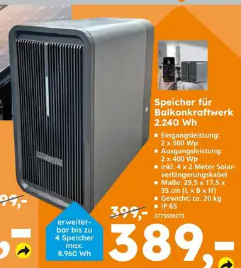 Jetzt im Angebot bei Globus Baumarkt: Speicher für balkonkraftwerk ✅ Aktion gültig vom 22-02 bis 27-02.