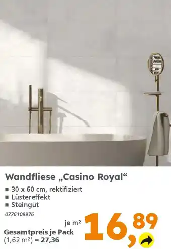 Wandfliese „Casino Royal" ist jetzt im Angebot bei Globus Baumarkt, gültig vom 18-01-2026 bis 24-01-2026. Besuchen Sie die Website von Globus Baumarkt oder kaufen Sie Wandfliese „Casino Royal" direkt im Geschäft. Auf Prospektangebote.de finden Sie immer die besten aktuellen Aktionen. Vergleichen Sie Wandfliese „Casino Royal" mit anderen Angeboten und prüfen Sie, ob sich ein Kauf jetzt lohnt. Behalten Sie kommende Aktionen im Blick, denn manche Produkte sind nur nächste Woche oder nur vor Ort verfügbar.Häufig gestellte Fragen über Wandfliese „Casino Royal"