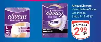 Werfen Sie einen Blick auf die günstigsten Produkte zwischen all den Angeboten! Wenn Sie gerne wissen möchten, ob Globus die höchsten Rabatte für Always Discreet anbietet, vergleichen Sie die Angebote ganz einfach auf der Startseite mit den anderen Geschäften.