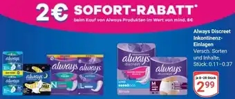 Always Discreet Inkontinenz Einlagen-Angebot bei Globus