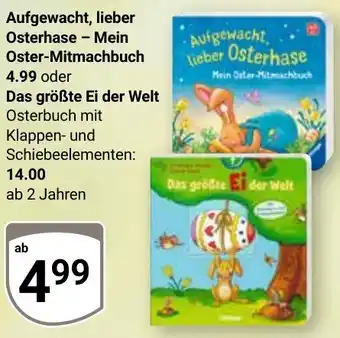 Jetzt im Angebot bei Globus: Aufgewacht, lieber Osterhase - Mein Oster-Mitmachbuch oder Das größte Ei der Welt ✅ Aktion gültig vom 16-03 bis 21-03.