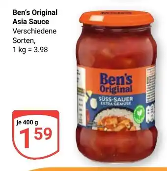 Den Preis von dem Ben's Original Asia Sauce finden Sie auch oben auf der Website, zusammen mit dem Datum, ab wann das Angebot erhältlich ist. Sie können die Preise auch im aktuellen Globus Prospekt nachhalten oder auf der Globus Website nachschauen. Durch die Angebote können Sie sicher sein, die Globus Produkte zum absoluten Bestpreis zu ergattern.