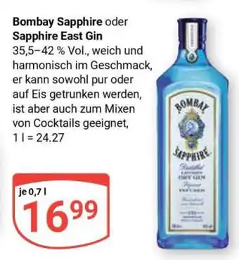 Jetzt im Angebot bei Globus: Bombay Sapphire oder Sapphire East Gin ✅ Aktion gültig vom 27-04 bis 2-05.