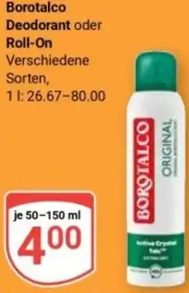Borotalco Deodorant oder Roll-On 50 - 150 ml