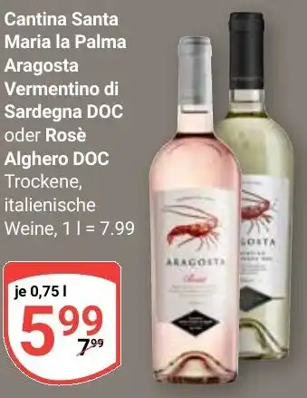 Cantina Santa Maria la Palma Aragosta Vermentino di Sardegna DOC oder Rosè Alghero DOC Aktion bei Globus