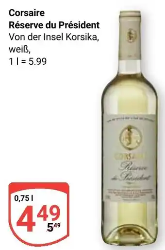 Den Preis von dem Corsaire Réserve du Président finden Sie auch oben auf der Website, zusammen mit dem Datum, ab wann das Angebot erhältlich ist. Sie können die Preise auch im aktuellen Globus Prospekt nachhalten oder auf der Globus Website nachschauen. Durch die Angebote können Sie sicher sein, die Globus Produkte zum absoluten Bestpreis zu ergattern.
