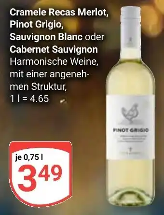 Jetzt im Angebot bei Globus: Cramele Recas Merlot, Pinot Grigio, Sauvignon Blanc oder Cabernet Sauvignon ✅ Aktion gültig vom 29-12 bis 3-01.