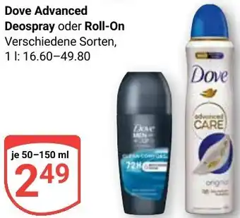 Dove Advanced Deospray oder Roll-On 50 - 150 ml
