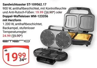 Jetzt im Angebot bei Globus: EMERIO Sandwichtoaster ST-109562.17 oder Doppel-Waffeleisen WM-123356 mit Herzform ✅ Aktion gültig vom 20-04 bis 25-04.