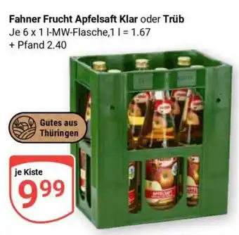 Jetzt im Angebot bei Globus: Fahner Frucht Apfelsaft Klar oder Trüb ✅ Aktion gültig vom 20-04 bis 25-04.