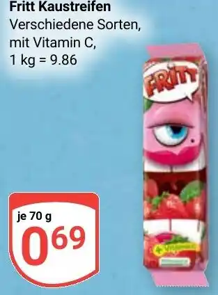 Den Preis von dem Fritt Kaustreifen finden Sie auch oben auf der Website, zusammen mit dem Datum, ab wann das Angebot erhältlich ist. Sie können die Preise auch im aktuellen Globus Prospekt nachhalten oder auf der Globus Website nachschauen. Durch die Angebote können Sie sicher sein, die Globus Produkte zum absoluten Bestpreis zu ergattern.