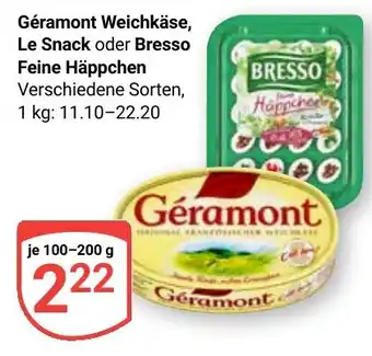 Géramont Weichkäse, Le Snack oder Bresso Feine Häppchen 100-200 g