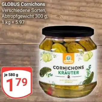 Den Preis von dem GLOBUS Cornichons finden Sie auch oben auf der Website, zusammen mit dem Datum, ab wann das Angebot erhältlich ist. Sie können die Preise auch im aktuellen Globus Prospekt nachhalten oder auf der Globus Website nachschauen. Durch die Angebote können Sie sicher sein, die Globus Produkte zum absoluten Bestpreis zu ergattern.