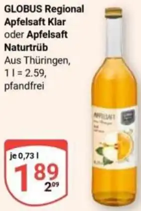 GLOBUS Regional Apfelsaft Klar oder Apfelsaft Naturtrüb 0.73 l