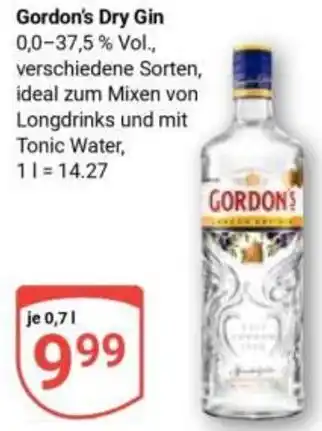 Das Angebot ist in verschiedenen Geschäften erhältlich. Schauen Sie sich alle Produkte an, um das günstigste Gordon's Dry Gin zu ergattern. Wenn Sie gerne nachschauen möchten, ob der Artikel woanders noch günstiger ist, werfen Sie einen Blick auf die Kategorie 'Kaufhäuser'. Möglicherweise sind diese Angebote auch interessant für Sie: Gordon's London Dry Gin, Gordon's London Dry Gin & Johnnie Walker Red Label Scotch Whisky, oder Gordon's London Dry Gin.