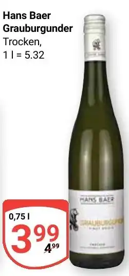 Hans Baer Grauburgunder Trocken Angebote und Aktionen bei Globus