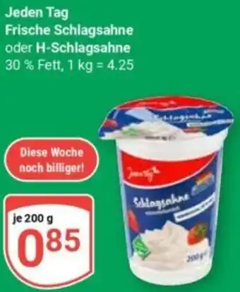 Jeden Tag Frische Schlagsahne oder H-Schlagsahne 200 g