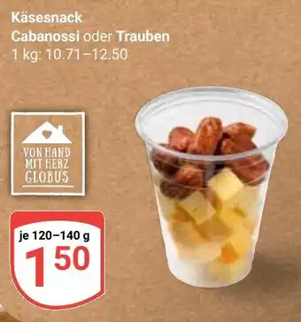 Jetzt im Angebot bei Globus: Käsesnack Cabanossi oder Trauben ✅ Aktion gültig vom 9-02 bis 14-02.