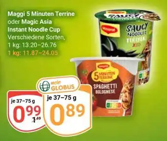 Jetzt im Angebot bei Globus: Maggi 5 Minuten Terrine oder Magic Asia Instant Noodle Cup ✅ Aktion gültig vom 27-04 bis 2-05.