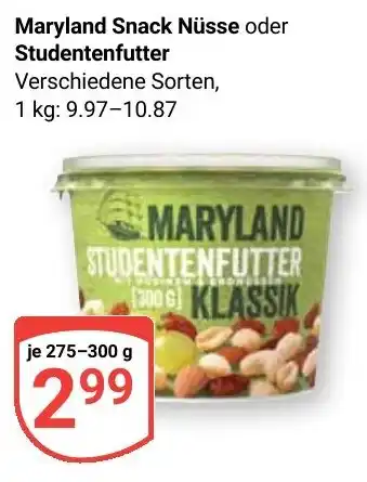 Maryland Snack Nüsse oder Studentenfutter Angebote und Online Aktionen direkt aus dem aktuellen Globus Angebot