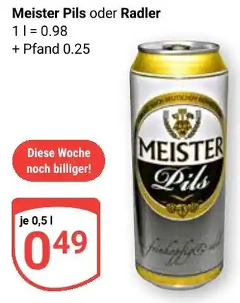 Jetzt im Angebot bei Globus: Meister Pils oder Radler ✅ Aktion gültig vom 9-02 bis 14-02.