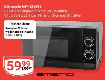 Das Angebot ist in verschiedenen Geschäften erhältlich. Schauen Sie sich alle Produkte an, um das günstigste Mikrowelle MW-131692 zu ergattern. Wenn Sie gerne nachschauen möchten, ob der Artikel woanders noch günstiger ist, werfen Sie einen Blick auf die Kategorie 'Kaufhäuser'. Möglicherweise sind diese Angebote auch interessant für Sie: Mikrowelle MW 791, CLATRONIC Mikrowelle MW 791 & emerio Mikrowelle MW-131692.