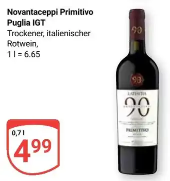 Jetzt im Angebot bei Globus: Novantaceppi Primitivo Puglia IGT ✅ Aktion gültig vom 16-03 bis 21-03.
