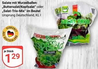Salate mit Wurzelballen: ,,Buttersalat/Kopfsalat" oder ,,Salat-Trio-Mix" im Beutel Aktion bei Globus