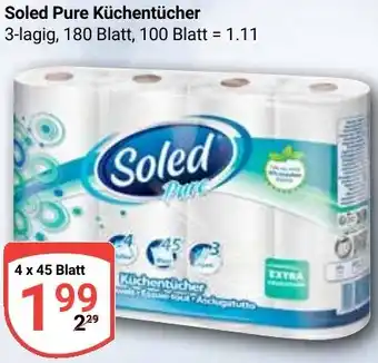 Den Preis von dem Soled Pure Küchentücher finden Sie auch oben auf der Website, zusammen mit dem Datum, ab wann das Angebot erhältlich ist. Sie können die Preise auch im aktuellen Globus Prospekt nachhalten oder auf der Globus Website nachschauen. Durch die Angebote können Sie sicher sein, die Globus Produkte zum absoluten Bestpreis zu ergattern.