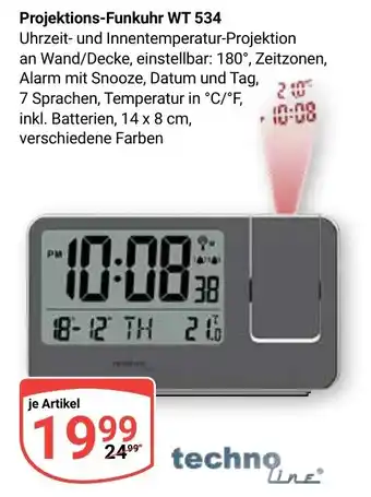 techno Line Projektions-Funkuhr WT 534-Angebot bei Globus