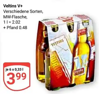 Abgesehen von Veltins V+, bietet Globus eine Menge anderer Artikel an. Behalten Sie den wöchentlichen Globus Prospekt im Blick, um die besten Angebote und Aktionen nicht zu verpassen. Abgesehen von Veltins V+ können Sie weitere, interessante Angebote entdecken: Veltins V+ Curuba, Veltins Pilsener oder V+ & Veltins pilsener.