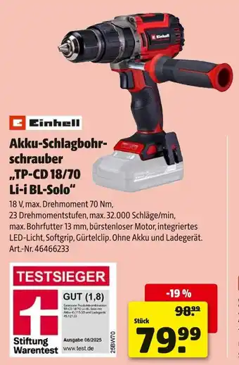 Einhell akku-schlagbohrschrauber tp-cd 18/70 li-i bl-solo Angebote und Aktionen bei Hagebau