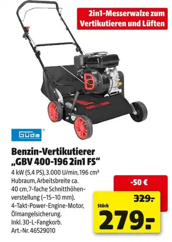 Güde benzin-vertikutierer „gbv 400-196 2in1 fs“ Aktion bei Hagebau