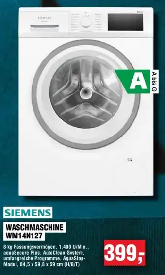 SIEMENS WASCHMASCHINE WM14N127 Angebote und Online Aktionen direkt aus dem aktuellen Handelshof Angebot