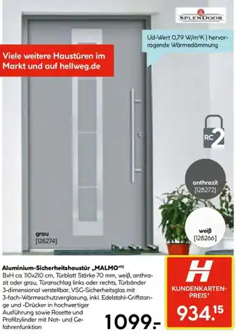Jetzt im Angebot bei Hellweg: Aluminium-Sicherheitshaustür „MALMO " ✅ Aktion gültig vom 9-03 bis 14-03.
