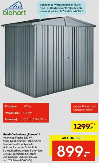 Biohort Metall-Gerätehaus „Europa"-Angebot bei Hellweg
