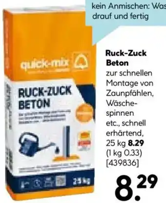 quick-mix Ruck-Zuck Beton Aktion bei Hellweg